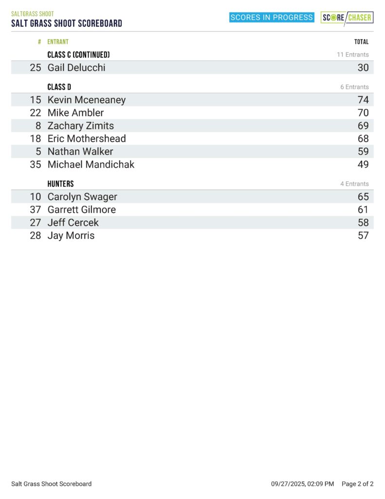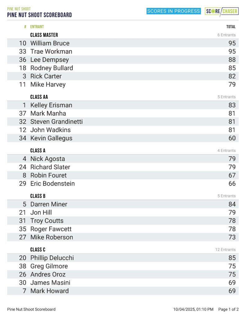 Registered shoots include submitting your NSCA score in your Registered Class (A-E) to the National Sporting Clays Association. Also, every participant is included in the Resort’s Jackpot! We use the Lewis Class scoring system and awards are given to both Registered and Hunter class alike at the conclusion of each shoot. Fun Day Shoot Jackpots are awarded by Lewis Class scoring.